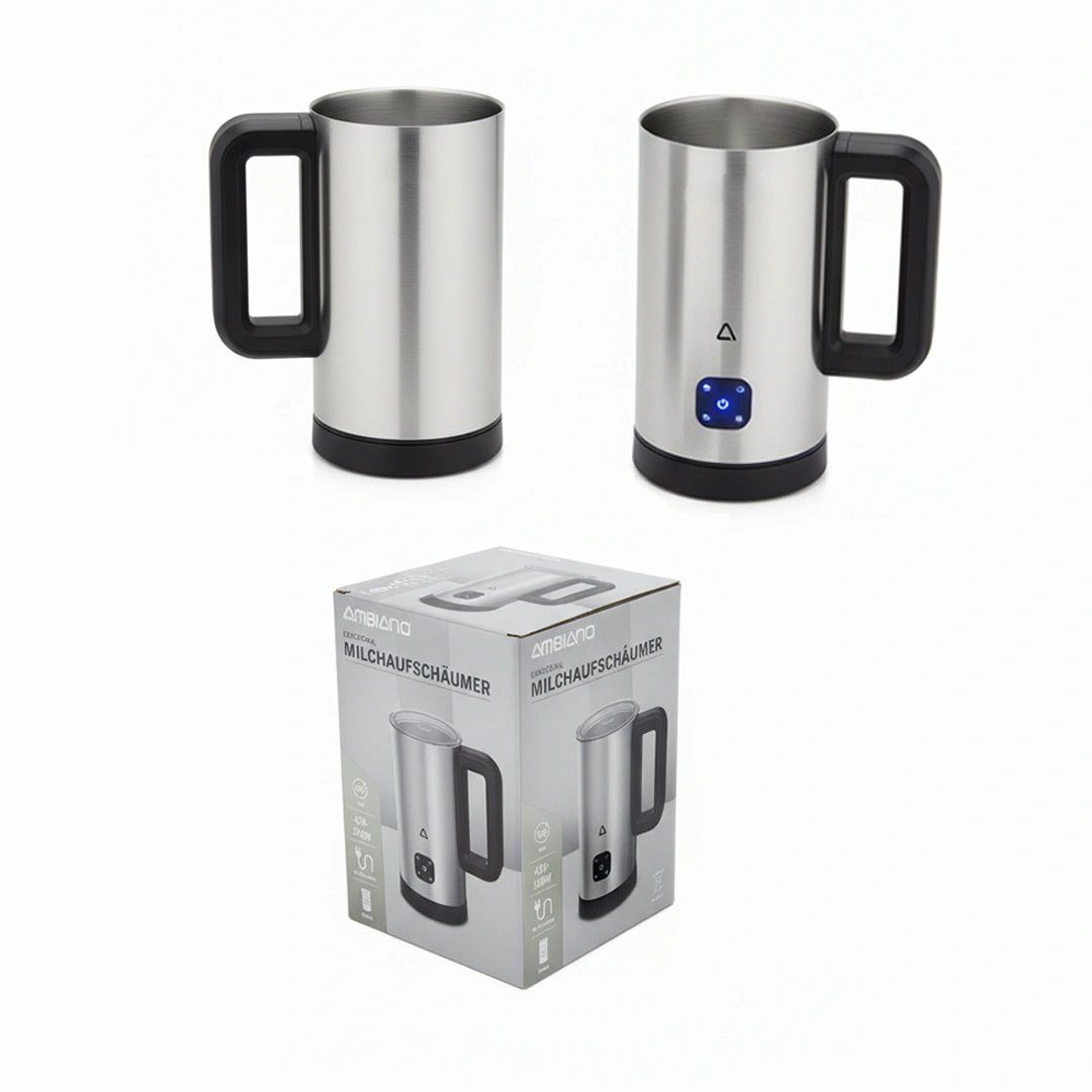 بدنه داخلی از استیل ضدزنگ محفظه داخلی ساختهشده از استیل مقاوم با پوشش نچسب ILAG برای تمیزکاری آسان و جلوگیری از چسبیدن شیر. قابلیت تهیه کف شیر گرم و سرد دستگاه میتواند هم فوم شیر داغ و هم فوم سرد تولید کند. قابلیت گرم کردن شیر بدون کف میتوان از آن برای گرم کردن شیر ساده نیز استفاده کرد. دارای دو سری مختلف یکی برای کفسازی (فوم کردن) و دیگری برای همزدن یا گرم کردن شیر. پایه ۳۶۰ درجه قابل چرخش دستگاه بدون سیم بهصورت آزادانه روی پایه میچرخد و بهراحتی جدا میشود. طراحی شیک و بدنه استیل براق ظاهر مدرن و مقاوم مناسب برای استفاده در آشپزخانههای خانگی. کارکرد بیصدا و خاموشی خودکار پس از اتمام کار، دستگاه بهطور خودکار خاموش میشود. ظرفیت استاندارد برای چند فنجان قهوه یا لاته مناسب برای تهیه فوم شیر کافی جهت چند نوشیدنی در یک نوبت. محافظت حرارتی ایمن در برابر داغ شدن بیش از حد محافظت دارد. محتویات جعبه: دستگاه فومساز شیر Ambiano پایه ۳۶۰ درجه دو عدد سری (کفزن و همزن) دفترچه راهنما کارت گارانتی