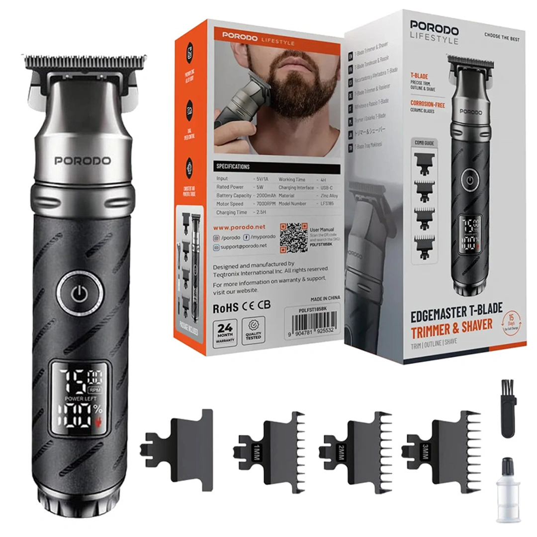 ماشین اصلاح و شیور Porodo Lifestyle Edgemaster T-Blade یک ابزار قدرتمند و چندکاره برای اصلاح دقیق و راحت است. این دستگاه با بدنهای مقاوم از آلیاژ روی ساخته شده و در کنار طراحی شیک، دوام بالا و مقاومت عالی در برابر خوردگی را ارائه میدهد.