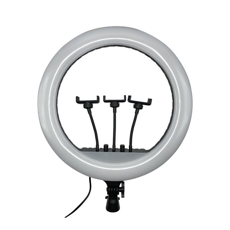 این رینگ لایت دارای ۳ عدد هولدر موبایل نرم و انعطاف پذیر است که برای فعالان حوزه آموزش بسیار کاربردی است. همچنین به همراه این رینگ لایت ۳ پایه ای فلزی با قابلیت تنظیم ارتفاع عرضه می شود.