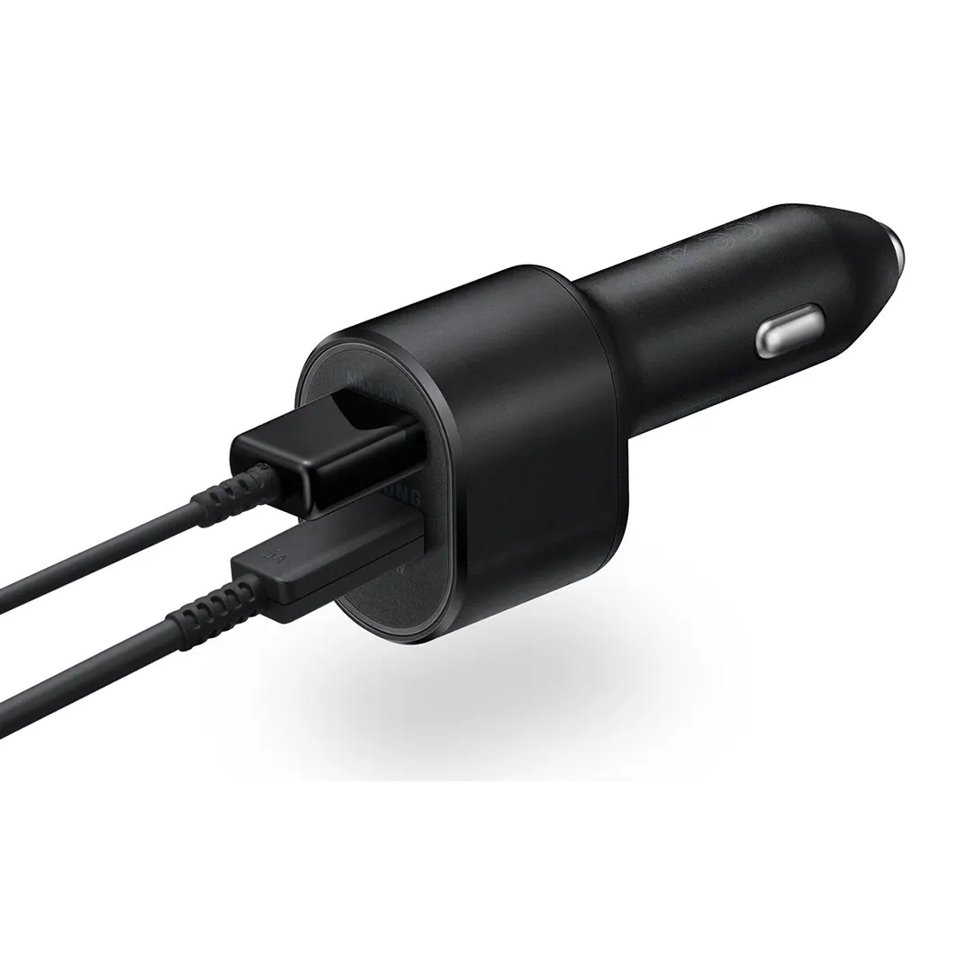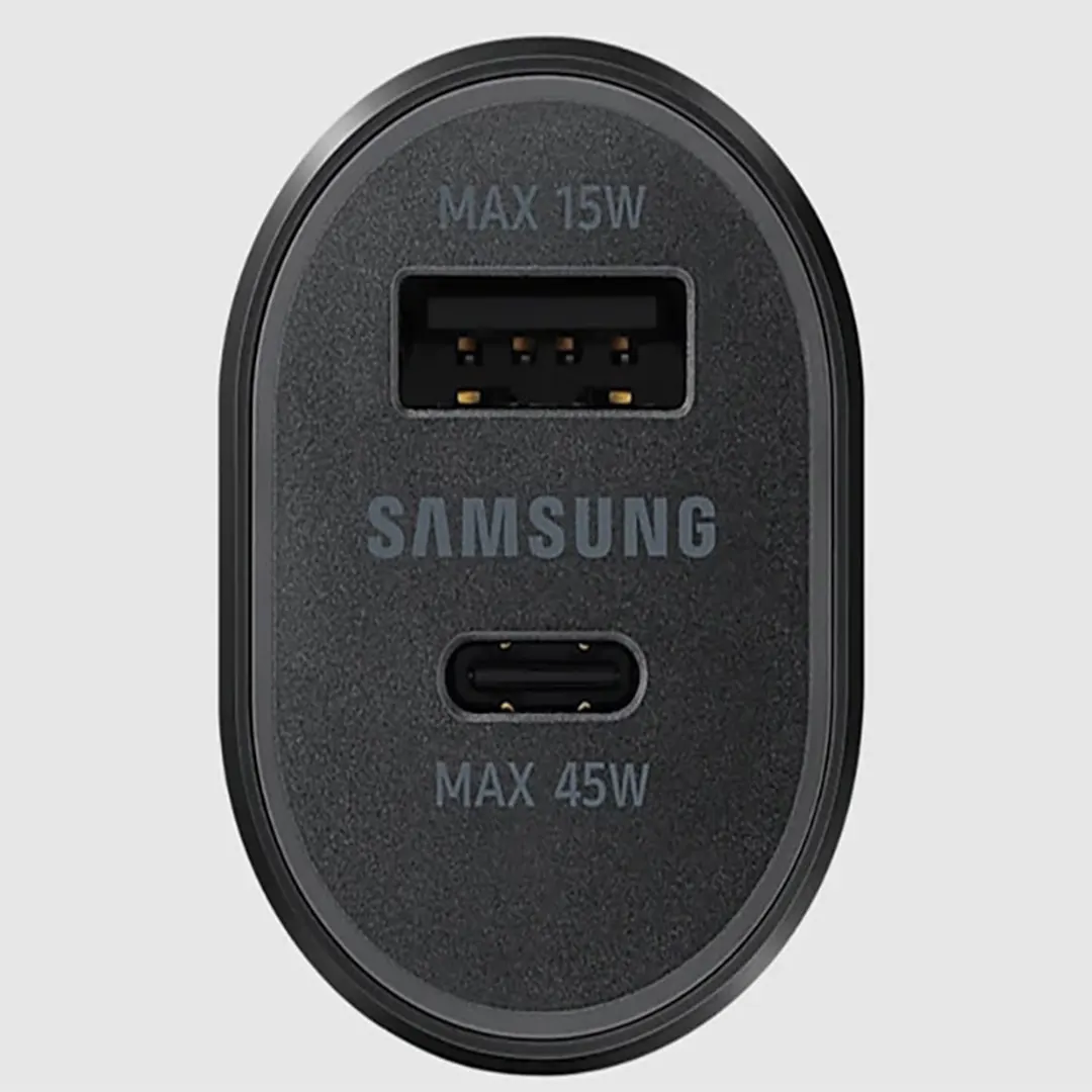 شارژر فندکی 45 وات سامسونگ امکان شارژ گوشی، تبلت، دوربین های دیجیتال و… را داخل خودرو، به شما میدهد این دستگاه دارای دو پورت USB-C و USB-A بوده که با استفاده از آن میتوانید دو دستگاه را به صورت همزمان شارژ کنید. پورت USB-A با توان 15 وات و پورت USB-C با توان 45 وات با انواع گوشی ها سازگارند و قابلیت شارژ سریع دستگاههای همراه شما را دارند.