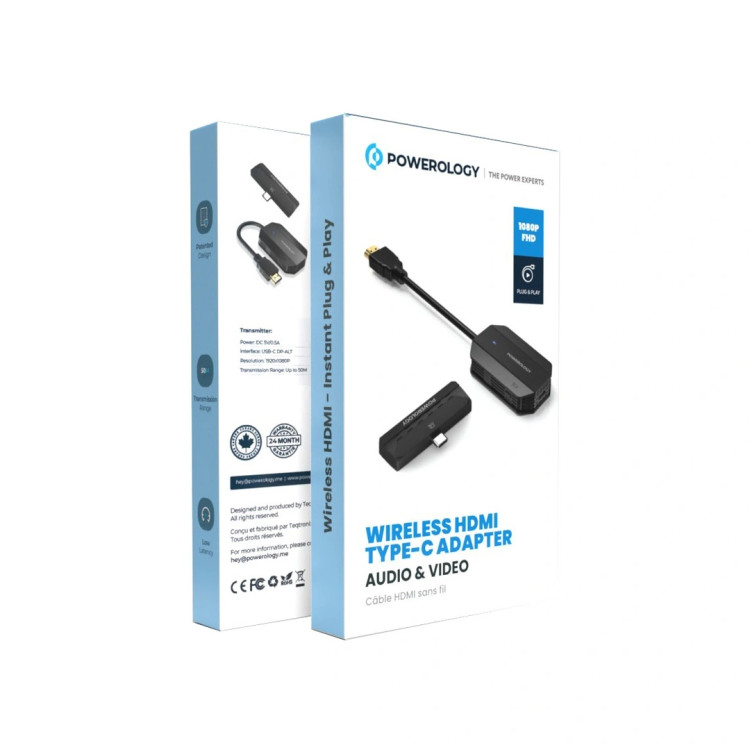 دانگل Powerology Wireless HDMI Type-C Adapter یک راهکار مدرن و کاربردی برای انتقال بیسیم صدا و تصویر با کیفیت بالا است که تجربه استریم را بسیار ساده و بدون دردسر میکند. این آداپتور با طراحی انحصاری و ثبتشده (Patented Design)، علاوه بر ظاهر منحصربهفرد، عملکردی پایدار و قابل اعتماد ارائه میدهد.