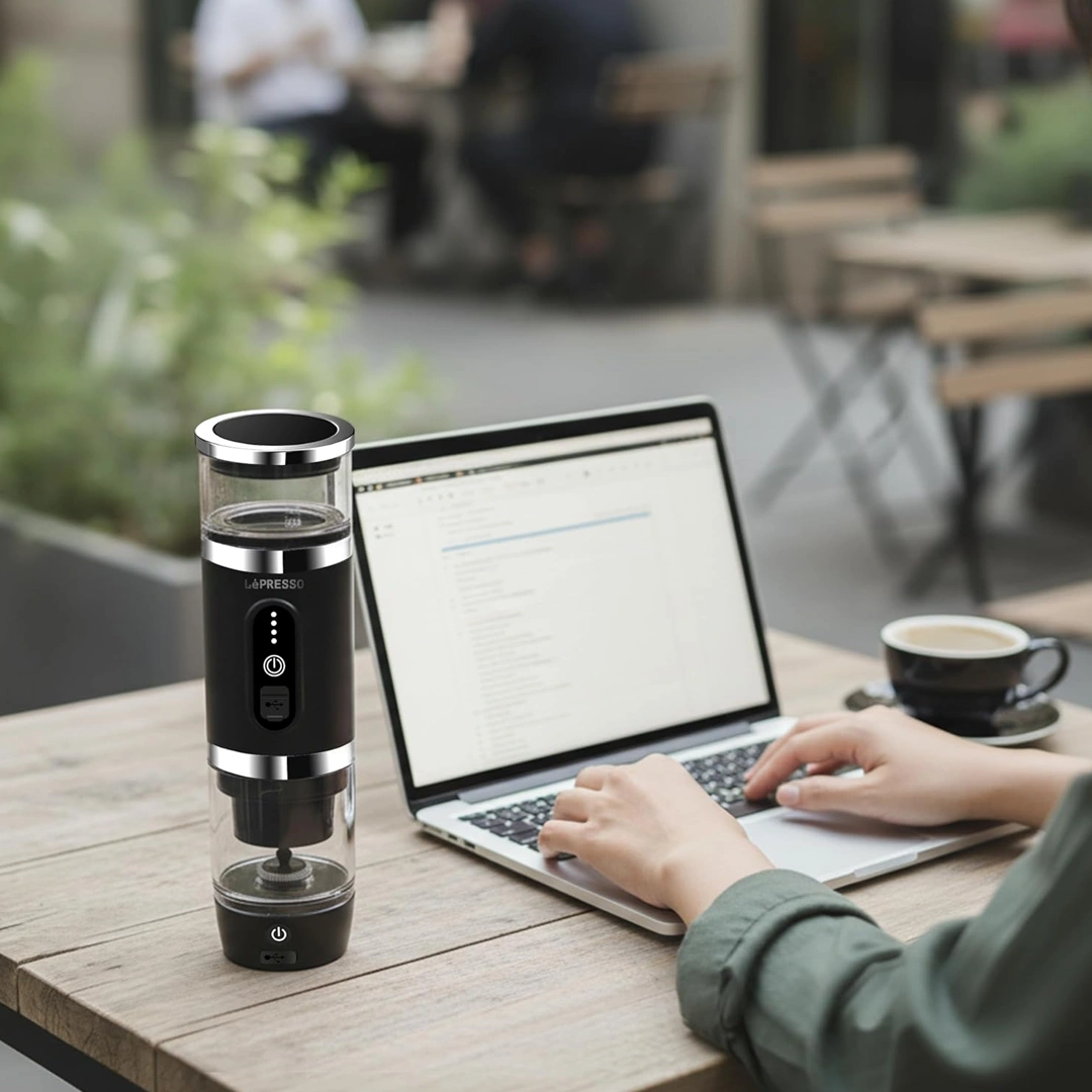 این دستگاه همچنین مجهز به فومر شیر است تا بتوانید بهراحتی فوم نرم و یکدست برای انواع لاته و کاپوچینو آماده کنید. چه در سفر باشید، چه در محل کار یا در فضای باز، این قهوهساز چهارکاره همیشه قهوه مورد علاقهتان را در دسترس قرار میدهد.