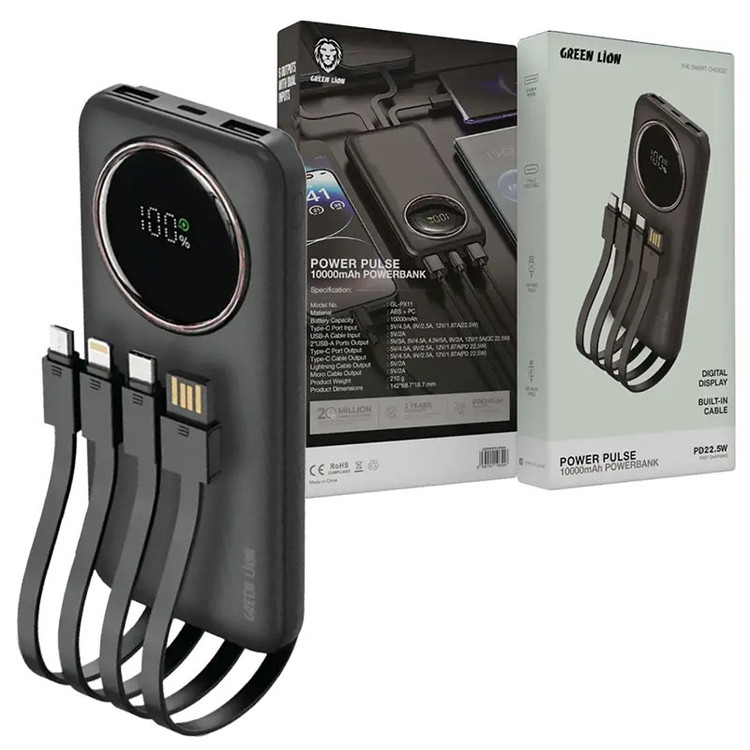 پاوربانک 10000mAH فست کابل متصل گرین لاین مدل پالس اورجینال دارای گارانتی اصل