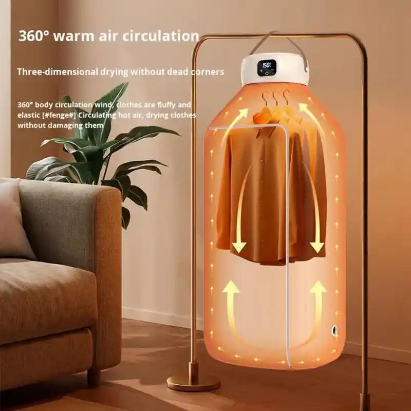 خشککن لباس Drying Heater یک خشککن برقی قابلحمل و جمعوجور است که با فناوری گرمایش هوای گرم و گردش جریان هوا بهسرعت رطوبت لباسها را از بین میبرد و آنها را خشک میکند، بدون اینکه به فضای بزرگ یا نور خورشید نیاز داشته باشید. این نوع خشککنها بهعنوان راهحل سریع و کاربردی برای آپارتمانهای کوچک، خوابگاه، دفاتر کار یا حتی سفر و کمپینگ شناخته میشوند و میتوانند لباسهای سبک، لباس زیر، حوله کوچک و لباس کودک را بهصورت مؤثر خشک کنند.