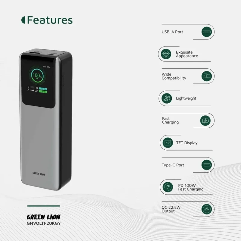 مشخصات فنی: پورت USB-A ظاهر زیبا و شیک پورت Type-C سازگاری گسترده شارژ سریع وزن سبک نمایشگر TFT خروجی QC با توان 22.5 وات