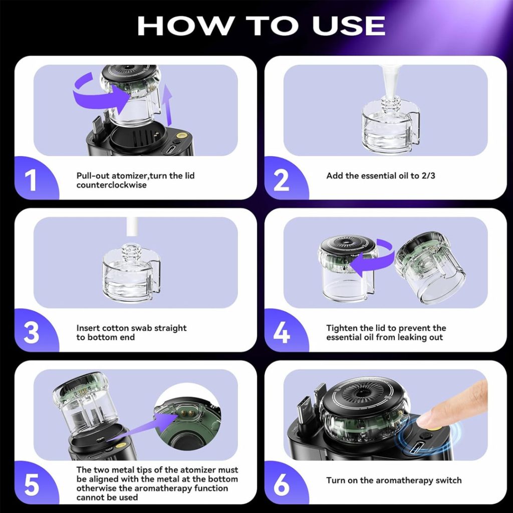 با تکنولوژی پخش عطر بدون آب، فقط چند قطره اسانس داخل دستگاه بریزید تا عطر دلخواهتان بهآرامی در فضای خودرو پخش شود.