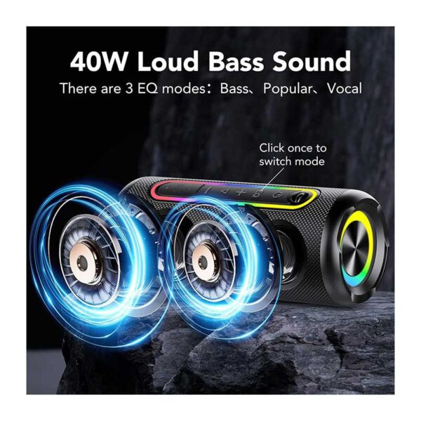 توان ۳۰ وات، استریو HD با باس قوی و ۳ حالت: این اسپیکر بلوتوثی بیسیم دارای دو درایور ۵۵ میلیمتری تمام برد با توان بالا، اسپیکر ۳۰ وات و پردازندههای دیجیتال پیشرفته است که سیستم صدای با وضوح بالا و کیفیت فوقالعاده را تضمین میکند. سه حالت مختلف برای تقویت باس یا صدای وکال قابل انتخاب است.