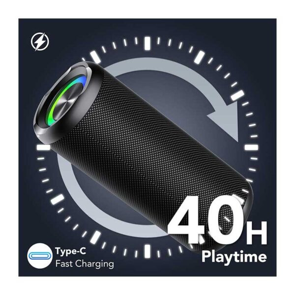باتری با عمر ۳۰ ساعت و شارژ سریع Type-C: باتری ۴۰۰۰ میلیآمپری اسپیکر بیسیم از فناوری ذخیره انرژی خودروهای برقی بهره میبرد، با ۲ ساعت شارژ میتوانید تا ۳۰ ساعت پخش موسیقی داشته باشید. علاوه بر این، میتوانید چراغهای چند رنگ را خاموش کنید تا عمر اسپیکر بیشتر شود.