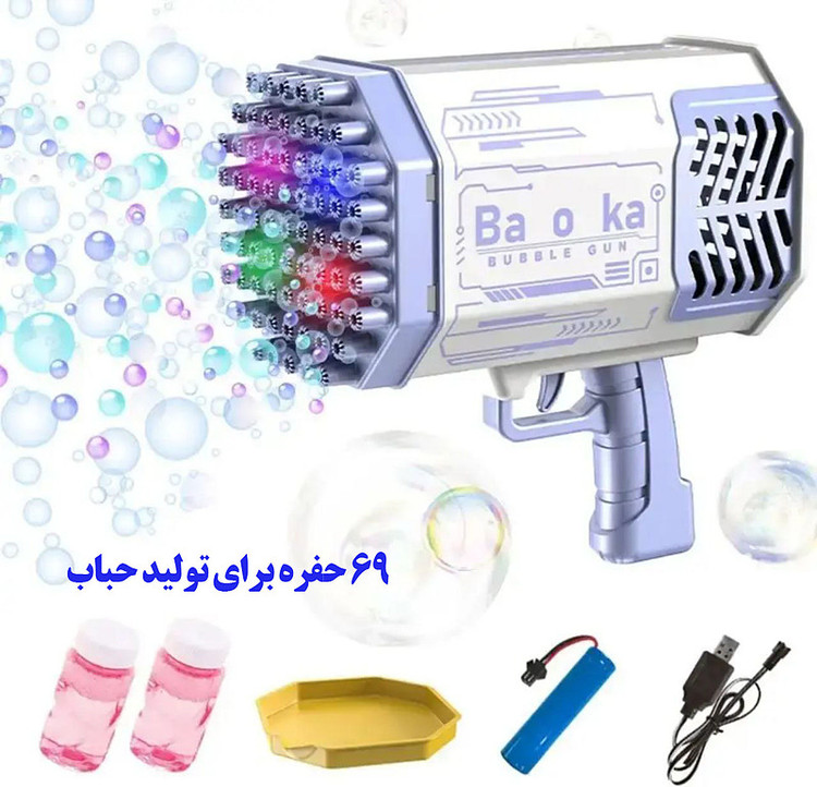 🚀 تفنگ حبابساز بازوکا مدل 69 حفره| Bubble Bazooka XL کد 34345