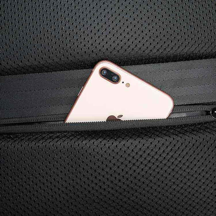 در قسمت کناری کوله یک پورت USB با درپوش محافظ قرار دارد که برای شارژ موبایل و سایر دستگاهها از طریق پاوربانک داخلی قابل استفاده است. فقط کافیست پاوربانک خود را داخل کوله متصل کرده و کابل شارژ را به درگاه بیرونی وصل نمایید.