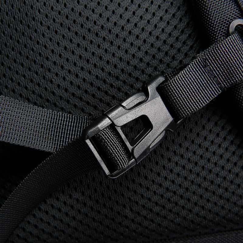 همچنین برای توزیع بهتر وزن و تعادل در حرکت، یک سگک سینهای تعبیه شده است. پشت بندها و قسمت پشتی کیف با اسفنج تنفسپذیر پوشانده شده تا تعریق را به حداقل برساند و از احساس گرما جلوگیری کند.