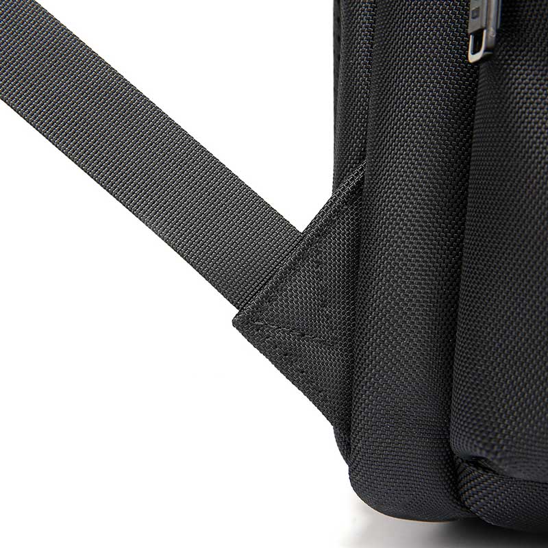 در پشت کیف، یک کمربند نایلونی مخصوص چمدان طراحی شده تا بتوانید به راحتی آن را روی دسته چمدان خود نصب کنید. همچنین یک دسته نرم در بالای کوله برای حمل دستی تعبیه شده است.