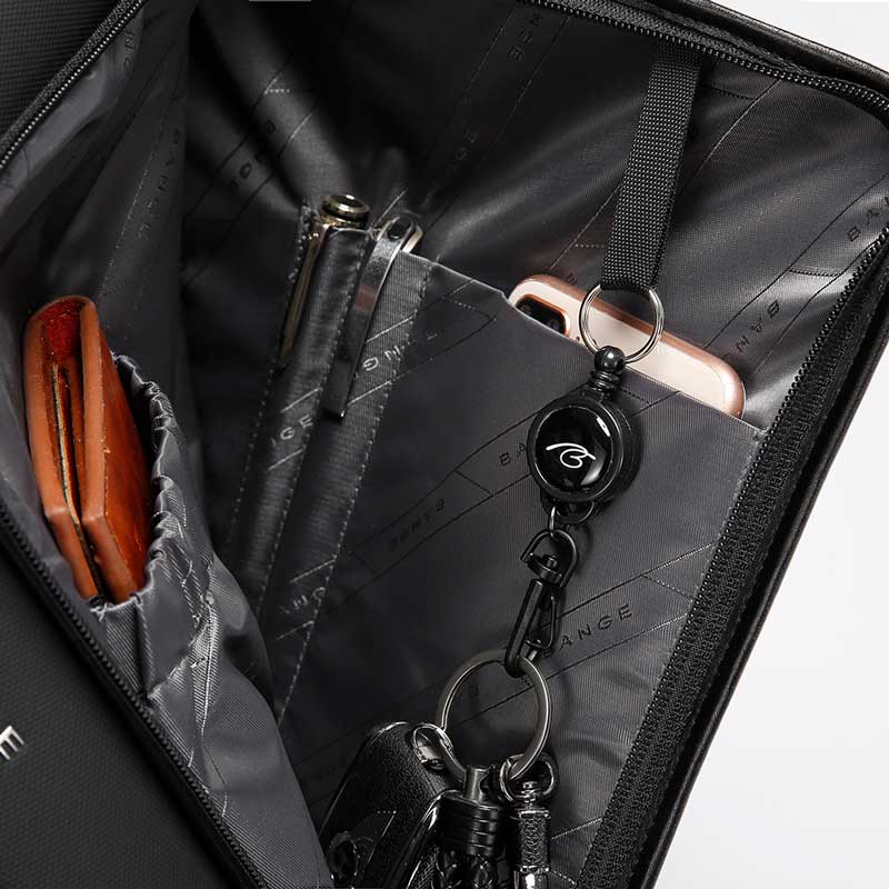 روی دسته سمت چپ، یک جا کارتی برای دسترسی سریع تعبیه شده است. علاوه بر این، کمربندی مخصوص برای نصب روی دسته چمدان دارد که جابجایی را در سفر آسان میکند.