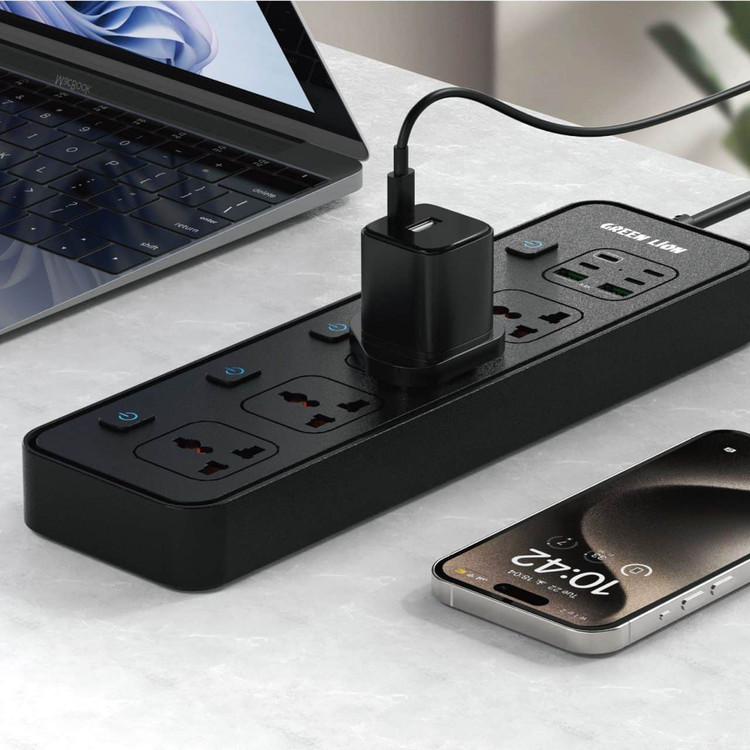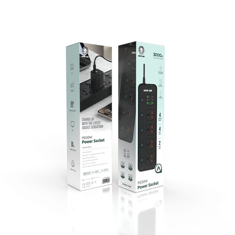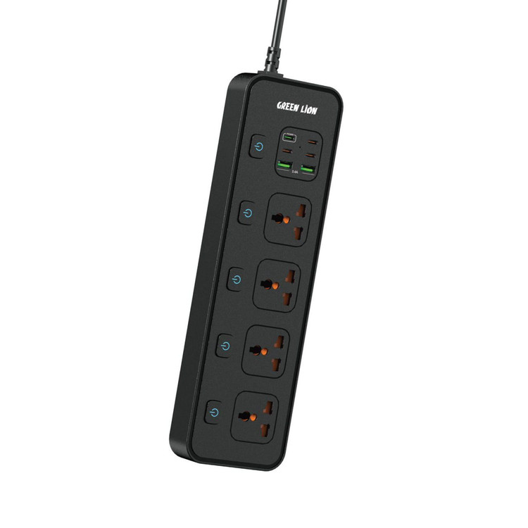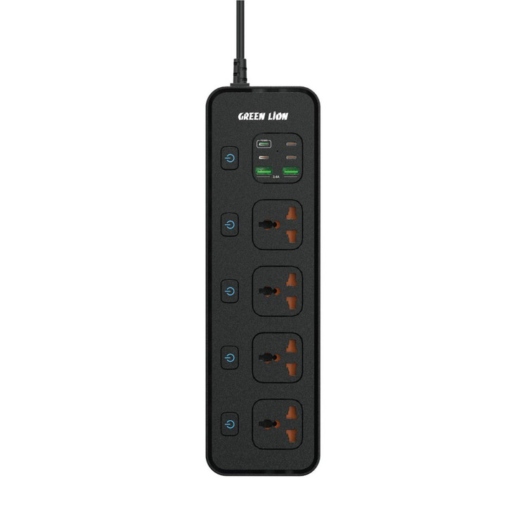این محصول با طراحی منحصر به فرد خود، پاسخگوی نیاز های روزمره شما خواهد بود. چند راهی گرین لاین با توان کلی 3000 وات 13 آمپر، مجهز به 4 پریز یونیورسال است که تمامی دو شاخه و ساخه های موجود در بازار پشتیبانی می کند. این چندراهی همچنین دارای محافظ کودک، دو پورت USB با استاندارد QC3 ور چهار پورت تایپ سی با استاندارد PD و توان 30 وات است. برای راحتی بیشتر، این دستگاه دارای دکمه خاموش/روشن برای هر پریز به صورت مجزا و کابل 2 متری است. این محصول برای شارژ و استفاده همزمان از انواع گوشی های تلفن همراه، لپ تاپ، کامپیوتر های خانگی، تلویزیون و سایر لوازم الکترونیکی ایده آل است.