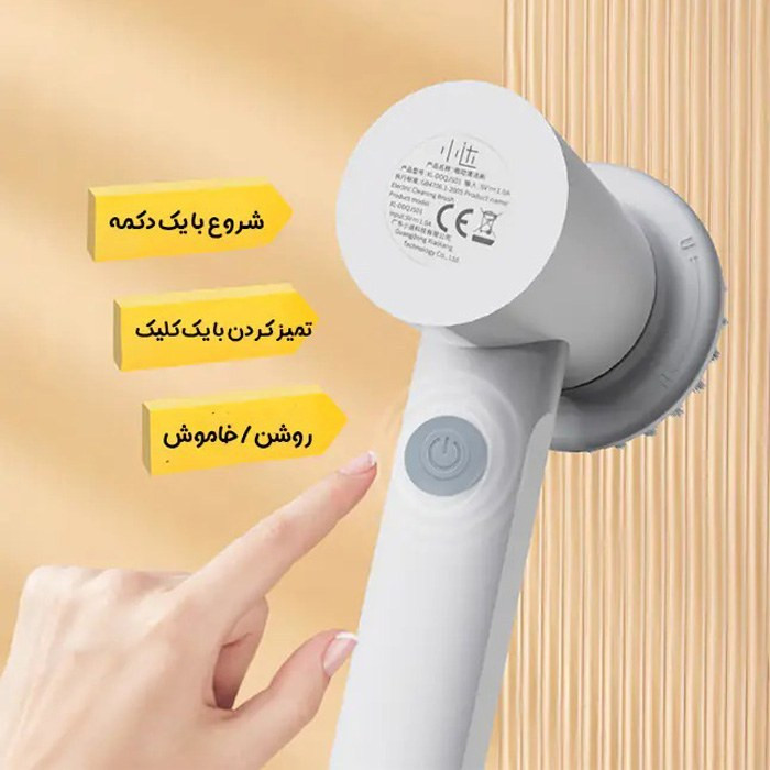 ویژگیها: ولتاژ نامی: 5 ولت جریان نامی: 1.0A پورت شارژ : USB_C ظرفیت باتری: 1200 میلی آمپر ساعت عمر باتری: 45 دقیقه دارای دکمه خاموش و روشن دو حالته برای افزایش سرعت ابزار پشتیبانی برای تمیز کردن شیشه، آینه، کف حمام، تمیز کردن آشپزخانه وزن بسته: 400 گرم ابعاد محصول : 18 *12* 5 سانتی متر ابعاد بسته بندی : 23 * 15 * 6 سانتی متر