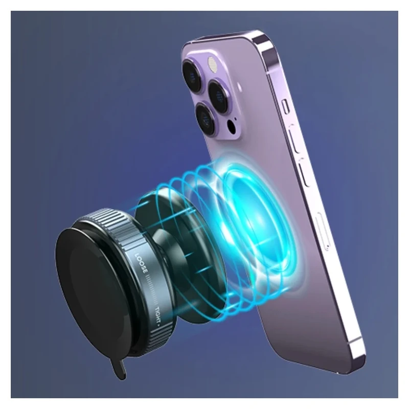 با ویژگی مکش وکیوم تقویتشده و مکانیزم قفل پیچشی، این پایه تلفن همراه حداکثر قدرت مکش فیزیکی را ارائه میدهد. بر خلاف پایههای چسبنده، این پایه تلفن خودرو طراحی سریع رهاسازی را برای جابهجایی آسان بدون برجای گذاشتن هیچ گونه اثری ارائه میدهد. هرچه هنگام رانندگی بیشتر تکان بخورد، پایه گوشی مکش محکم تر می شود.این نگهدارنده تلفن همراه برای خودرو دارای یک حلقه مغناطیسی دو لایه قدرتمند با الگوی دایره ای دقیق ۱:۱ برای اتصال پایدار و ایمن است. حتی در هنگام ترمزگیری ناگهانی، نیروی مغناطیسی 18 نیوتون تقویت شده تلفن شما را محکم در جای خود نگه می دارد.روی سطوح صاف مانند درهای شیشهای، کاشیهای سرامیکی، سطوح اکریلیک، فلز صیقلی، فولاد ضد زنگ، آلومینیوم، کروم و دیوارهای رنگشده صاف (مخصوصاً با پرداختهای براق یا نیمه براق) کار میکند. این پایه نگهدارنده تلفن خودرو برای سنگ مرمر یا گرانیت صیقلی نیز مناسب است، که معمولاً در کانترها، سطوح چوبی صاف و صیقلی یا مهر و موم شده و سایر سطوح پلاستیکی صاف یافت می شود.این نگهدارنده تلفن همراه خودرو قابلیت تنظیم کامل ۳۶۰ درجه را با طراحی سه محوره پایدار ارائه می دهد که از شل شدن آن جلوگیری می کند. توپ مفصلی روی این نگهدارنده تلفن همراه مغناطیسی برای ماشین، اصطکاک مناسبی را ایجاد میکند و به شما امکان میدهد به راحتی زاویه را تنظیم کرده و آن را در جای خود محکم نگه دارید.
