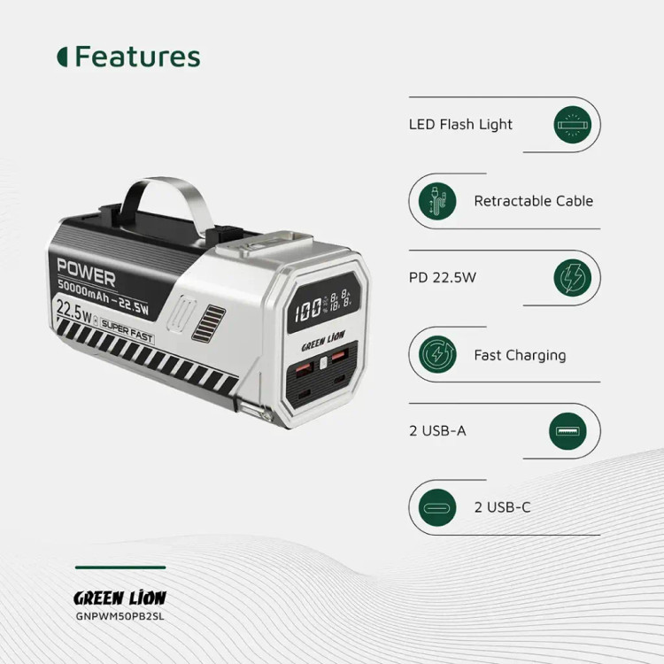 اگه دنبال یک راهحل قدرتمند و مطمئن برای شارژ همزمان چند دستگاه هستی و نمیخوای توی سفر یا محیط کار نگرانی شارژ داشته باشی ، پاور بانک گرین لاین مدل Power Max ظرفیت 50000 میلی آمپر ساعت ، انتخابی هوشمندانه و مطمئنه . ظرفیت بالا ، شارژ سریع ، طراحی کاربردی و چراغ LED داره که خیالتون از همه بابت راحته .