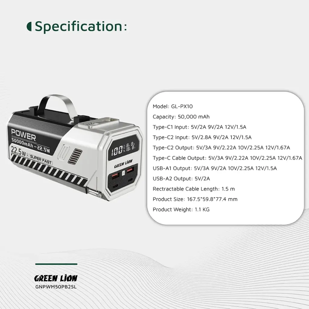 اگه دنبال یک راهحل قدرتمند و مطمئن برای شارژ همزمان چند دستگاه هستی و نمیخوای توی سفر یا محیط کار نگرانی شارژ داشته باشی ، پاور بانک گرین لاین مدل Power Max ظرفیت 50000 میلی آمپر ساعت ، انتخابی هوشمندانه و مطمئنه . ظرفیت بالا ، شارژ سریع ، طراحی کاربردی و چراغ LED داره که خیالتون از همه بابت راحته .