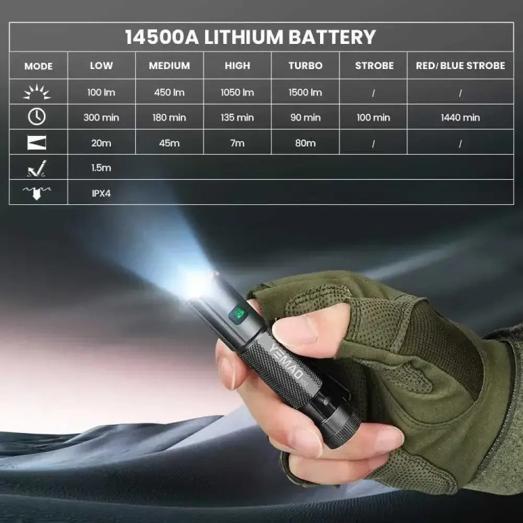 چراغ قوه YEMAO مدل M52 یک ابزار حرفهای و در عین حال کوچک است که با طراحی هوشمندانه و امکانات پیشرفته، نیازهای شما در شرایط مختلف را برطرف میکند. این چراغ قوه با ترکیب قدرت، دوام و قابلیتهای چندکاره، به همراهی قابل اعتماد در فعالیتهای روزمره، کمپینگ، تعمیرات و موقعیتهای اضطراری تبدیل شده است.