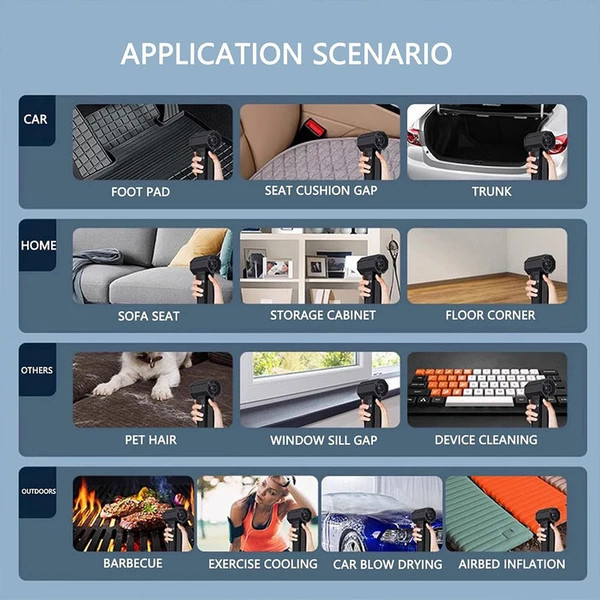 دمیدن هوای قوی برای پاککردن برگها، ذرات سبک و حتی آتشزدایی از روی سطوح