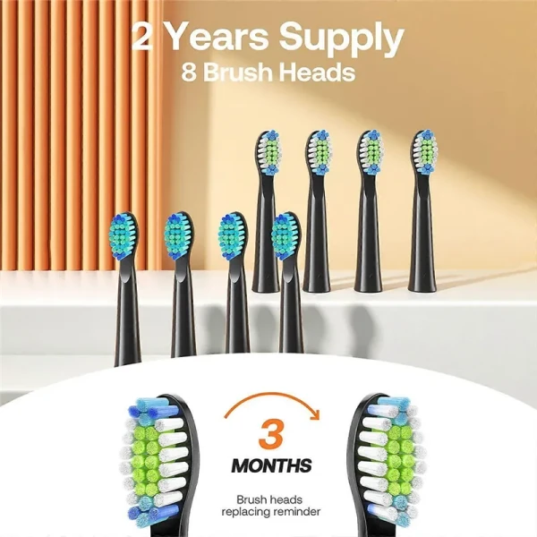 سر مسواک قابل تعویض بوده و با طراحی تخصصی، برای پاکسازی بهتر نقاط سختدست و فضای بین دندانها مناسب است. توصیه میشود هر ۳ ماه یکبار سر مسواک تعویض شود تا عملکرد بهینه حفظ گردد.