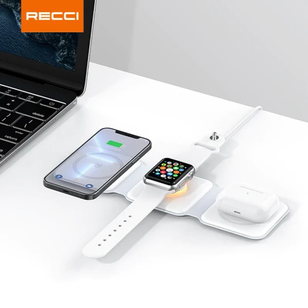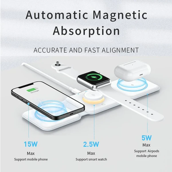 🔋 شارژر بیسیم 3 در 1 مغناطیسی – شارژ همزمان موبایل، ساعت هوشمند و ایرپاد