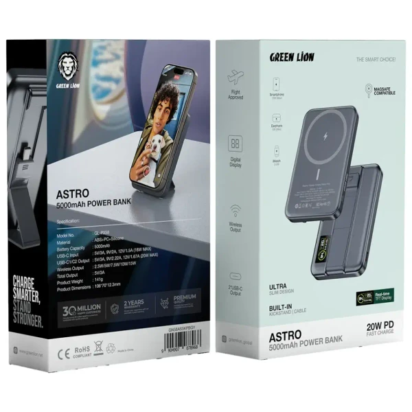 پاور بانک گرین لاین آسترو ۵۰۰۰ میلیآمپر ساعت، ۳ در ۱، ۲۰ وات دارای گارانتی و ضمانت اصالت کالا