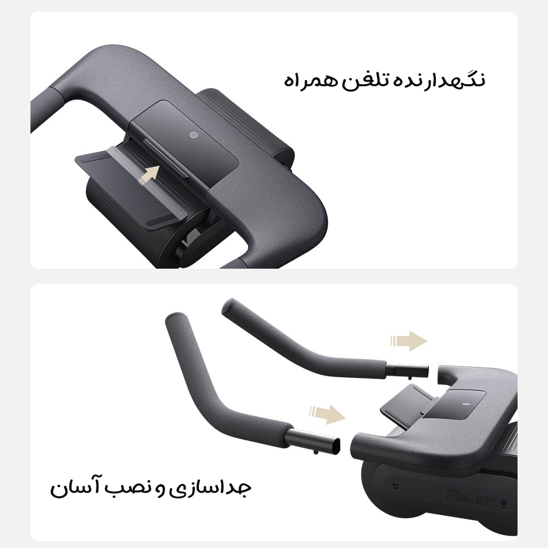 این دستگاه با ساختاری مقاوم، قابلیت تحمل وزن تا ۱۵۰ کیلوگرم را دارد و برای استفاده روزانه و مستمر طراحی شده است. نگهدارنده موبایل جداشونده به شما اجازه میدهد تا گوشی خود را مستقیماً روی دستگاه قرار داده و همزمان با تمرین، ویدیوهای آموزشی را مشاهده کنید.