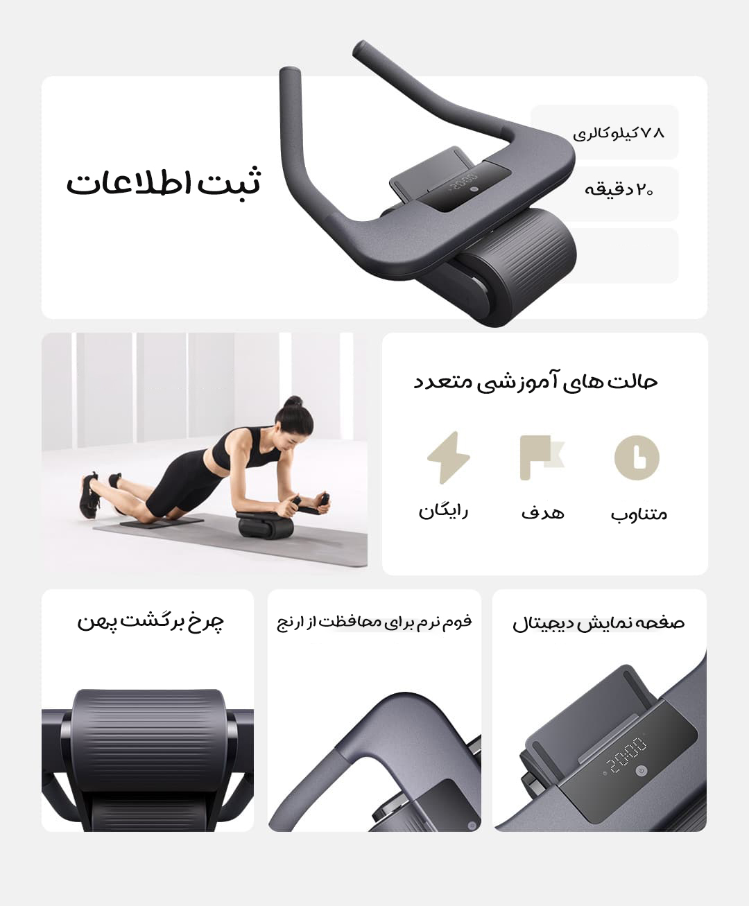 - طراحی پایدار: غلتک پهن و ضد لغزش، پدهای نرم و راحت برای آرنج و یک زیرانداز زانوی ضخیم، ثبات و راحتی بینظیری را در طول تمرین برای شما به ارمغان میآورند.