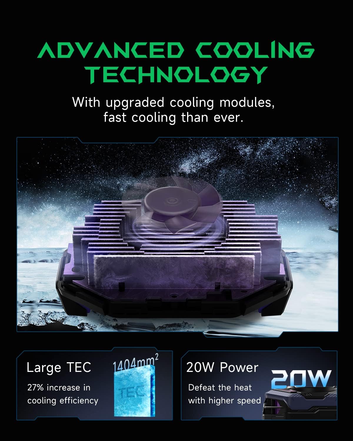 کاهش دمای گوشی تا ۳۰ درجه سانتیگراد با ترکیب فن ۷ پرهای پرسرعت، TEC بزرگ و ۱۷ قطعه هیتسینک