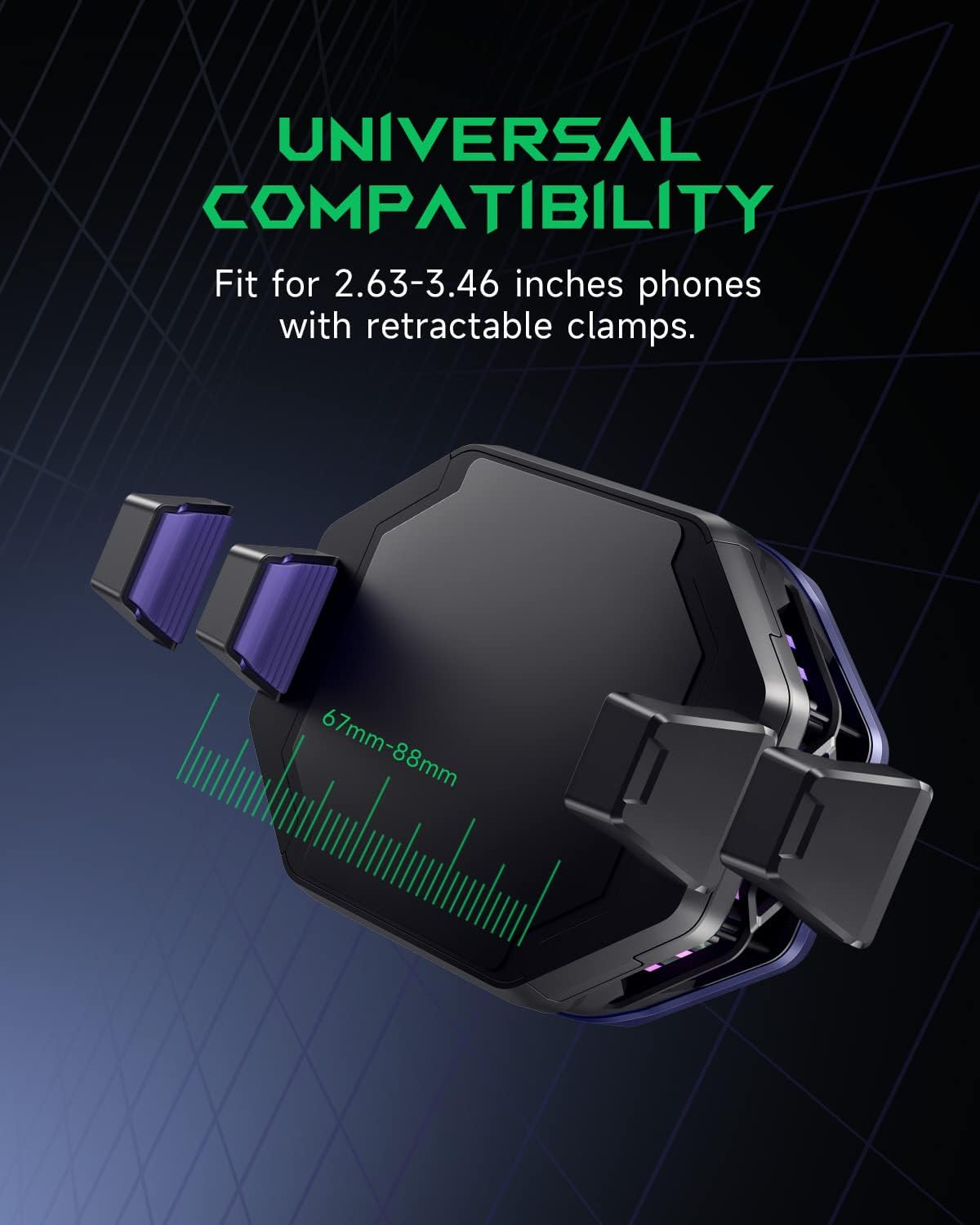 سازگار با گوشیهایی با عرض ۶۷ تا ۸۸ میلیمتر (۲.۶۳ تا ۳.۴۶ اینچ)