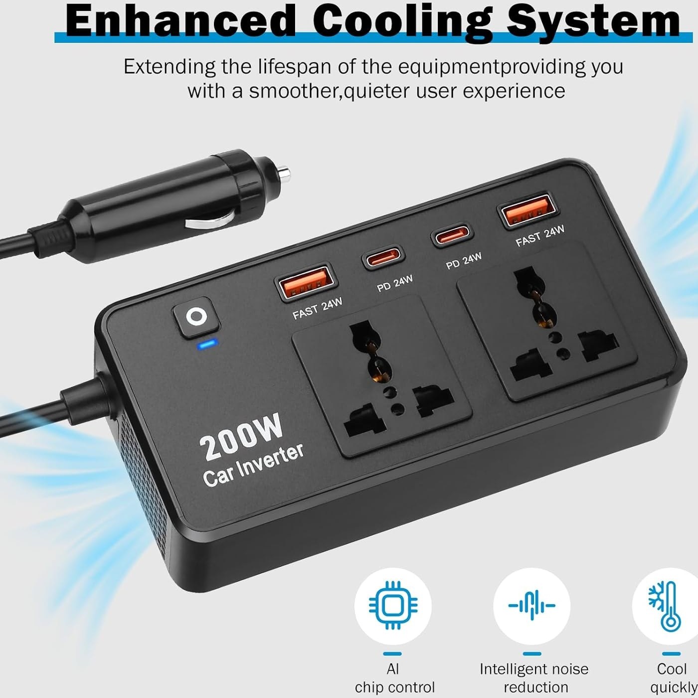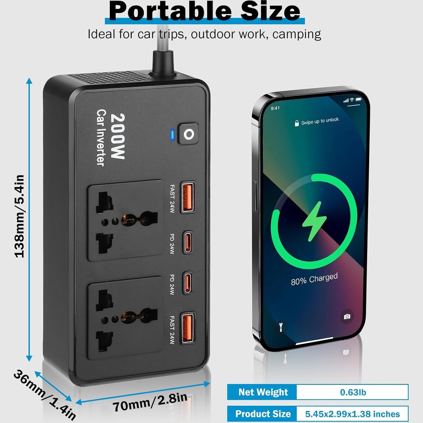 برق شهری را در هر کجا که هستید، همراه خود داشته باشید. اینورتر ۲۰۰ وات خودرو، یک ابزار ضروری برای تمام کسانی است که در سفر، کمپینگ یا مأموریتهای میدانی به برق ۲۲۰ ولت نیاز دارند. این دستگاه با اتصال آسان به فندکی خودرو، برق ۱۲ ولت DC را به برق شهری AC تبدیل کرده و با ۶ خروجی قدرتمند، به شما امکان میدهد تا انواع لوازم الکترونیکی خود، از لپتاپ و تجهیزات تخصصی گرفته تا گوشیهای هوشمند را به راحتی شارژ و روشن کنید.