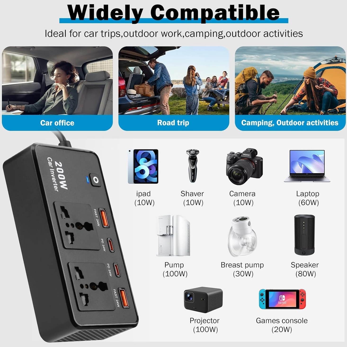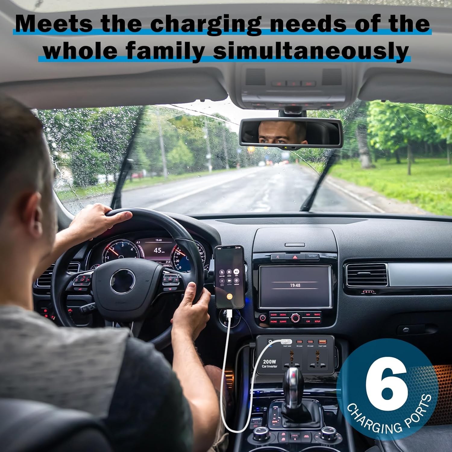 اینورتر با داشتن ۶ خروجی متنوع، نیازهای تمام سرنشینان خودرو را برطرف میکند. میتوانید همزمان لپتاپ خود را به پریز برق متصل کرده و گوشیهای هوشمند خود و همراهانتان را از طریق پورتهای USB فست شارژ، با حداکثر سرعت شارژ کنید. این ویژگی آن را به ابزاری ایدهآل برای سفرهای خانوادگی و کاری تبدیل کرده است.