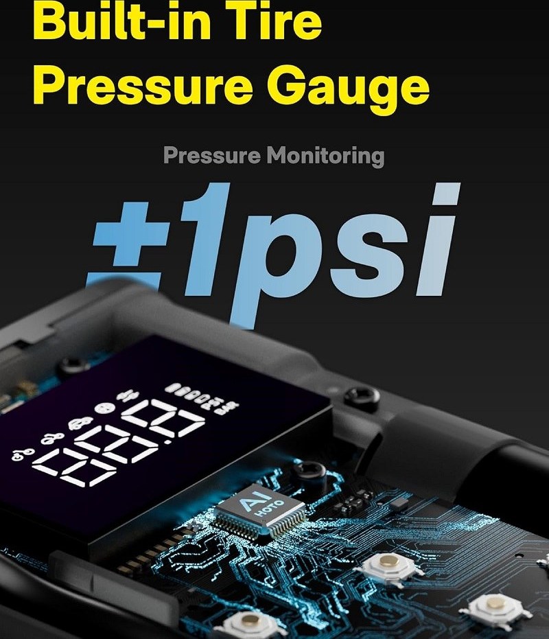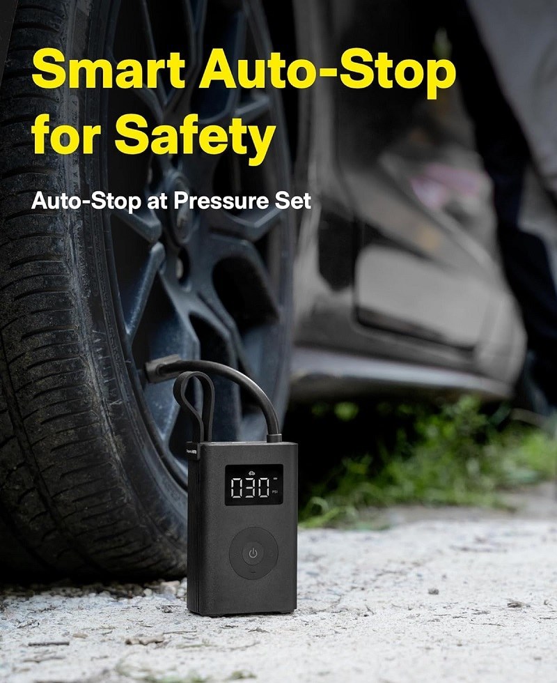 این پمپ باد به یک سنسور فشار دیجیتال بسیار دقیق مجهز شده است. کافیست فشار مورد نظر خود را تنظیم کنید و دکمه شروع را بزنید؛ دستگاه به طور هوشمند لاستیک را تا رسیدن به فشار دقیق باد کرده و سپس متوقف میشود. این ویژگی، حدس و گمان را حذف کرده و ایمنی رانندگی شما را تضمین میکند.