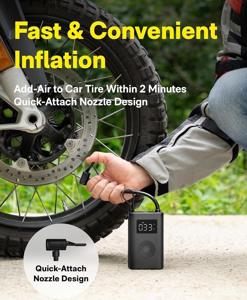 - فشار باد قدرتمند تا 150 PSI: توانایی باد کردن انواع لاستیک از دوچرخه و موتور گرفته تا خودروهای سواری.