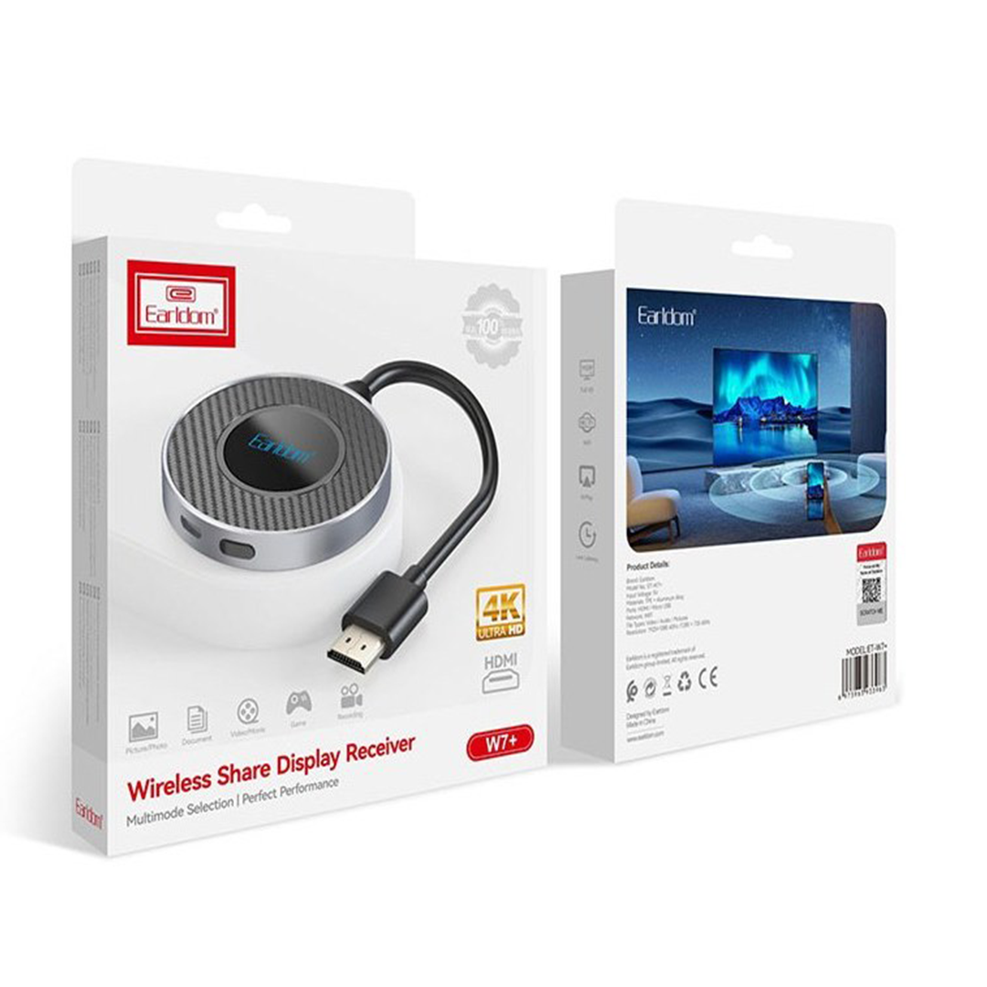 دانگل HDMI بیسیم ارلدام مدل ET-W7Plus انتخابی هوشمندانه برای کسانی است که به دنبال اشتراکگذاری محتوای گوشی، تبلت یا لپتاپ خود روی تلویزیون یا ویدیو پروژکتور هستند. این دانگل جمعوجور و کاربردی با پشتیبانی از کیفیت 4K و پروتکلهای مختلف بیسیم، تجربهای روان و باکیفیت از نمایش تصاویر، ویدیوها و سایر محتواها روی صفحهنمایش بزرگ فراهم میکند.